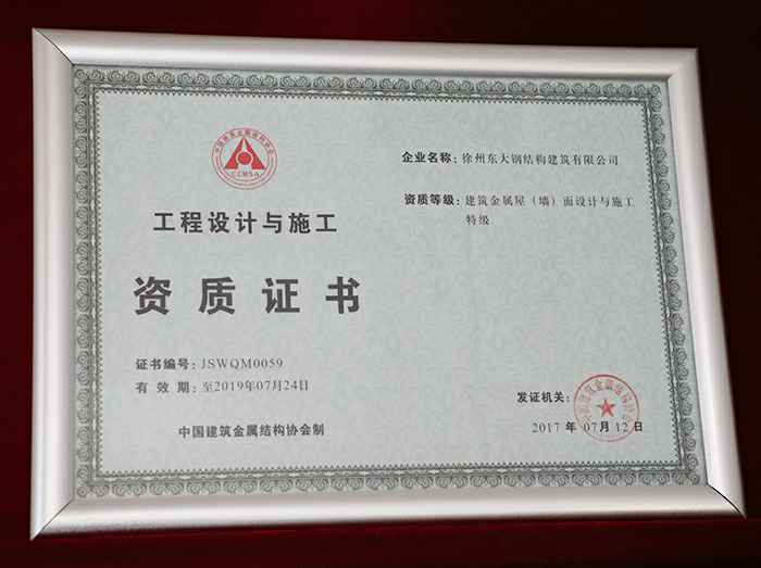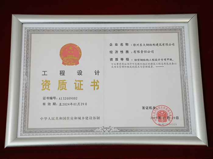 • 工程设计与施工资质证书